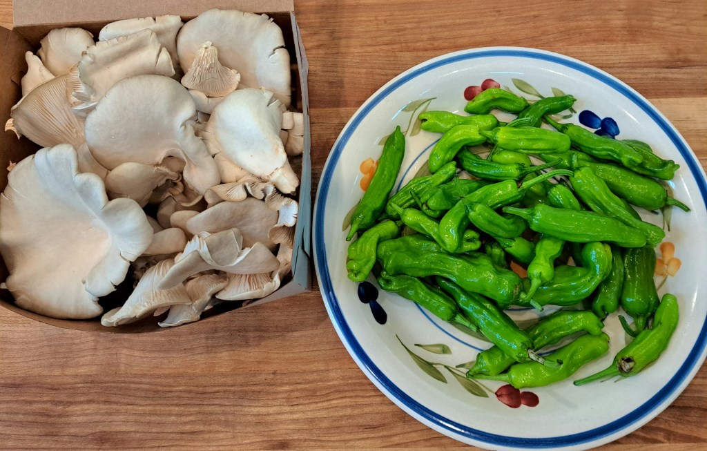 Last Saturday after the market we cooked oyster mushrooms from Gabriola Mushroom and our shishito peppers together. It was really yummy and super easy to make.