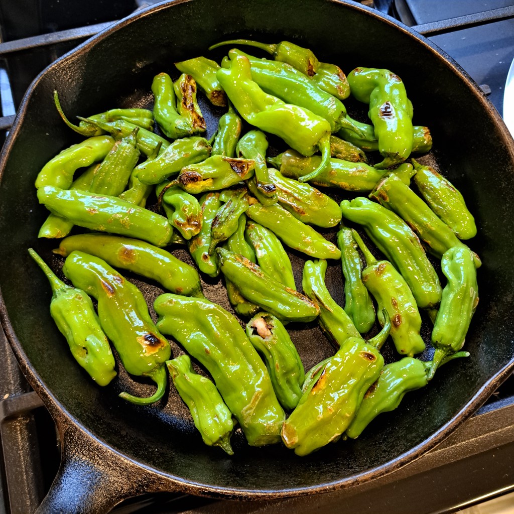 Ingredients: oyster mushrooms, shishito peppers, minced garlic