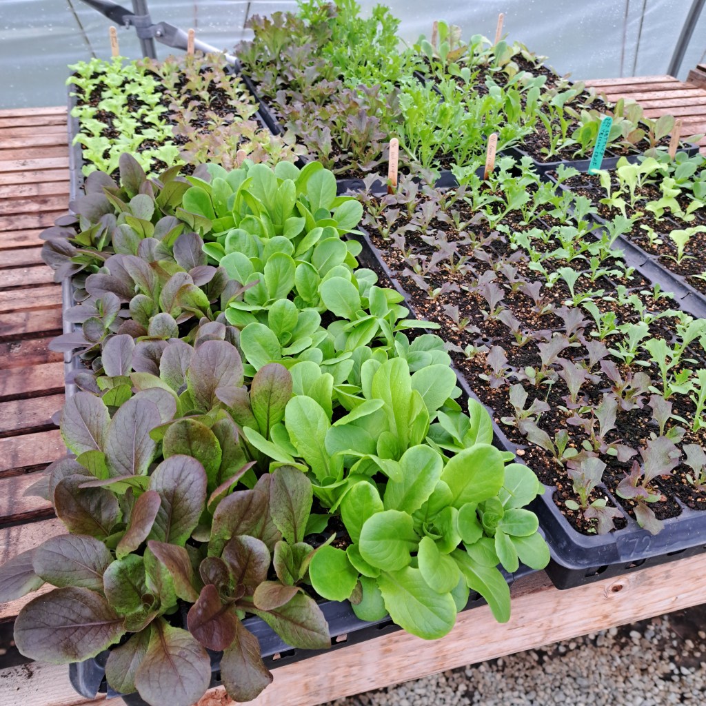 Baby lettuces are so cute. After being sown, it takes 3-4 weeks before they are ready to be transplanted. They are nicely protected from elements and slugs! After being transplanted, it takes 3-4 weeks before ready for harvest. As temperature drops, they grow slower and slower.