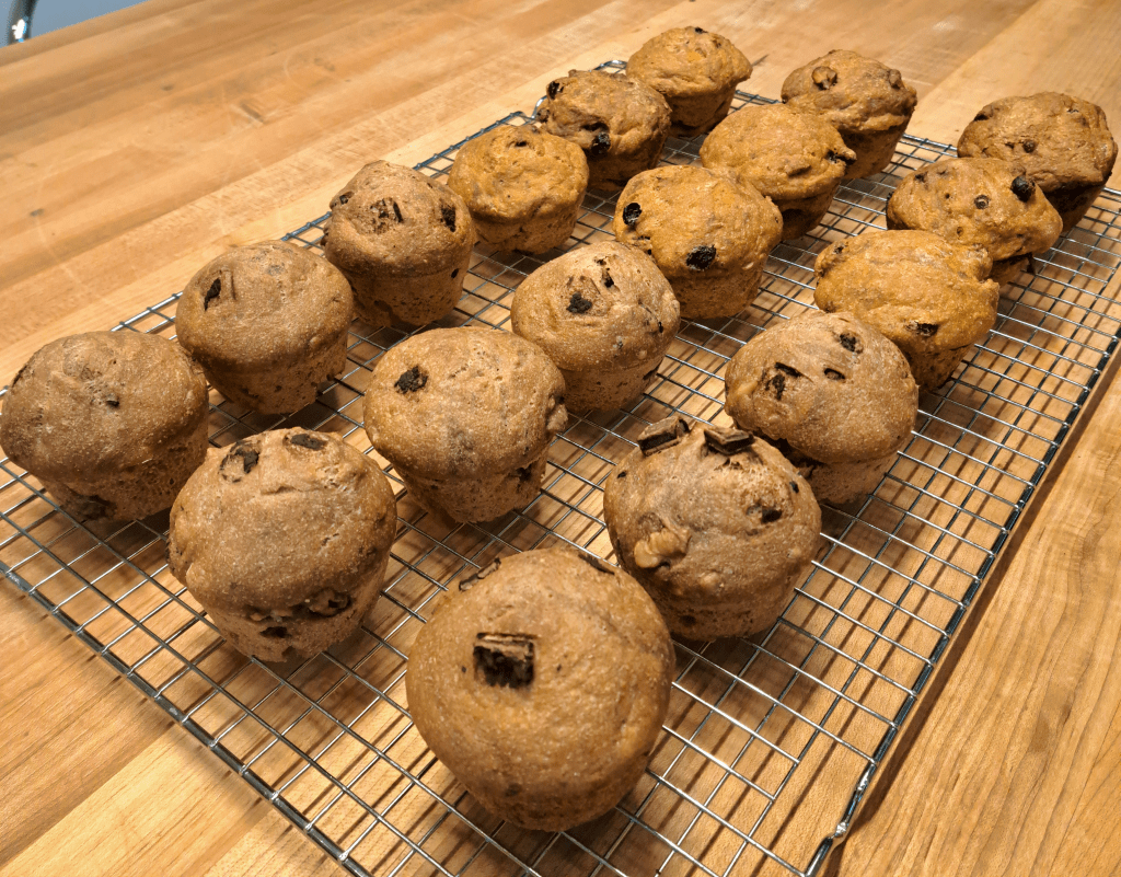 We have two flavors, Cardamom dark chocolate and Spiced carrot. These are made with wholegrain spelt and leavened with sourdough starter, not baking powder. We will bring them to market every Saturday.