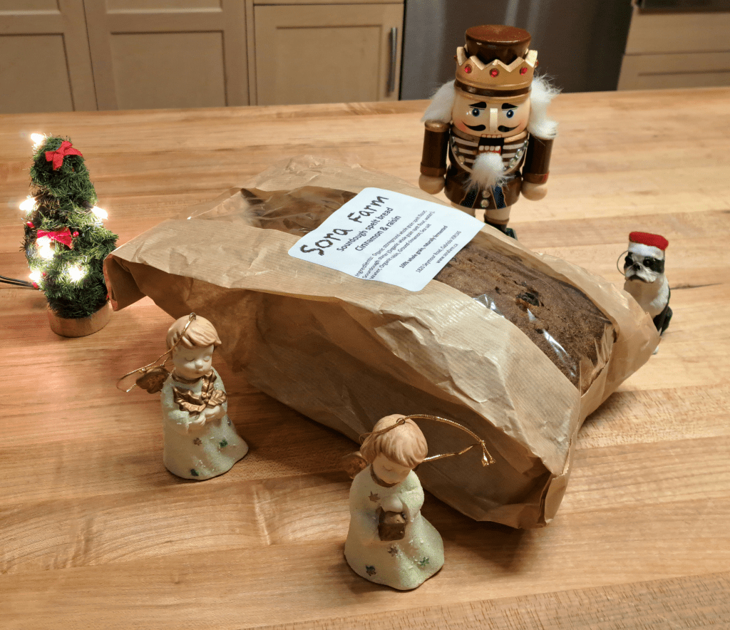There will be bonfire, mulled wine, cider, Bailey’s coffee, hot chocolate, a Somerset Farm turkey sausage or a plant-based sausage on a bun, sweet treats, live festive music, and of course, our bread.
