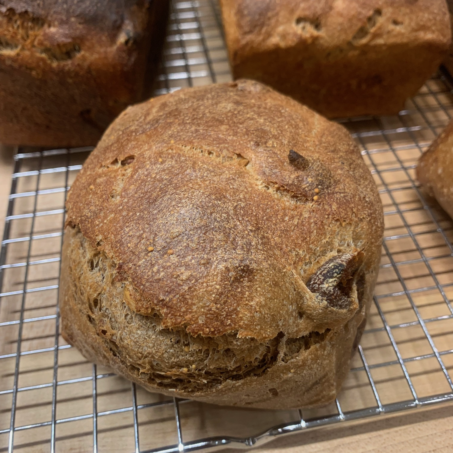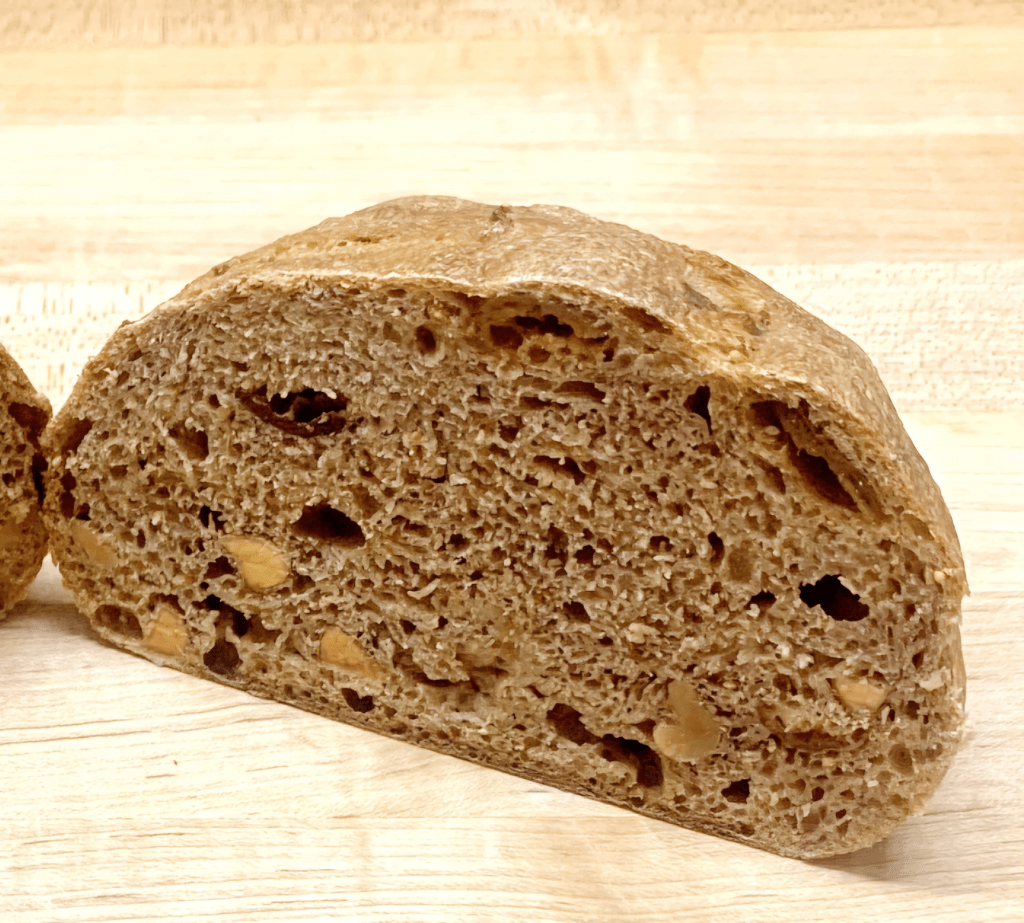 Fruits and nuts bun. This is a whole grain sourdough spelt bun with roasted almonds & walnuts, dried figs, cranberries and apricots. With just the right amount of flavour and sweetness (from fruits, no sugar added), we are sure it will add some excitement to your Christmas dinner as well as everyday meals.