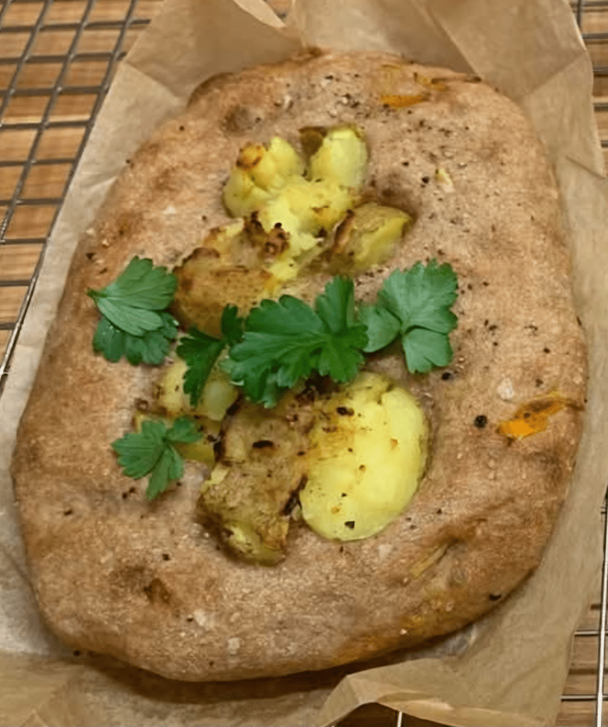 Potato explosion is an evolved version of our “farmer’s delight” flat bread and a big hit at the Christmas market. It was completed on Friday and no time to post before the market.