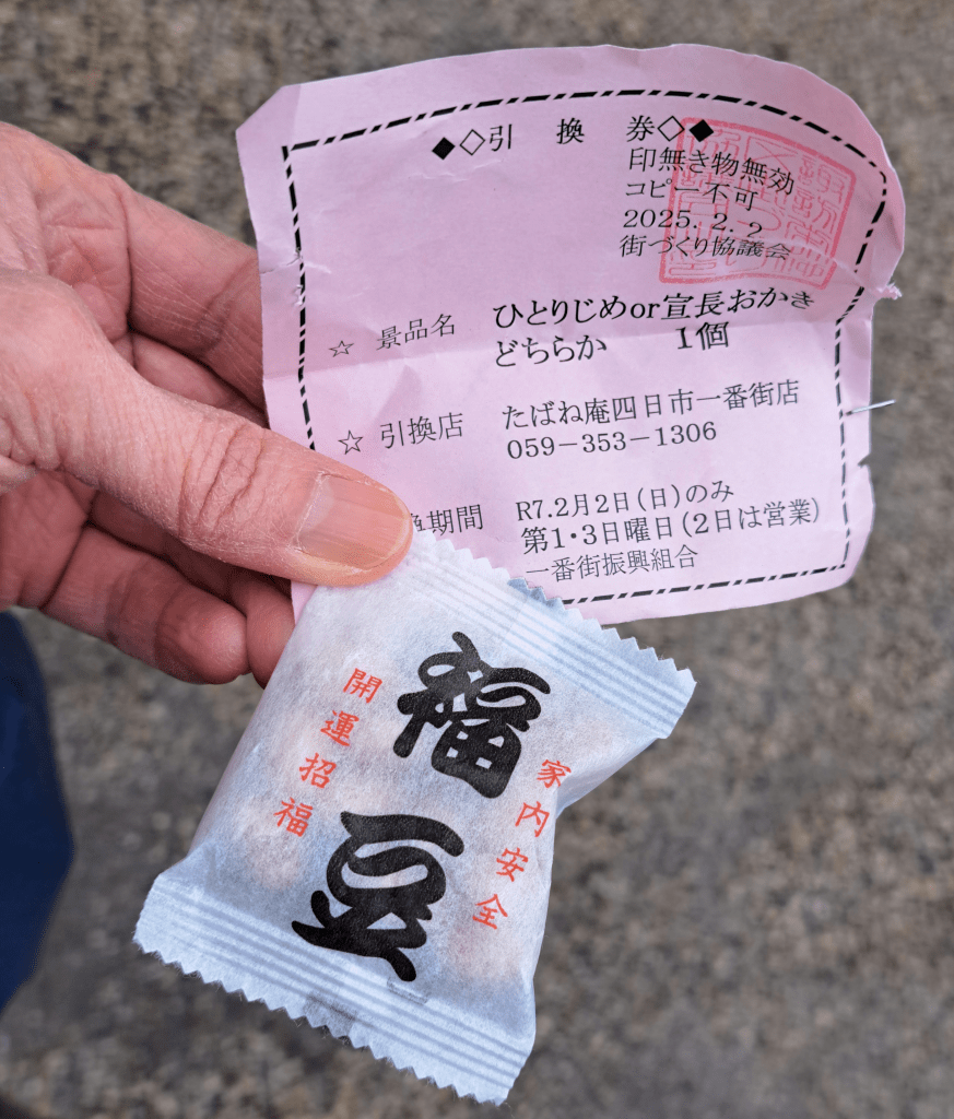 I visited a nearby shrine and received a couple of packets. One of them even had a lucky coupon attached which can be exchanged with rice crackers.