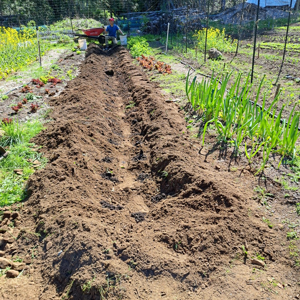 We have been busy planting these days. The biggest job last week for Kenji was planting potatoes. While he was working with potatoes, I (Yoko) was happy planting nasturtiums.