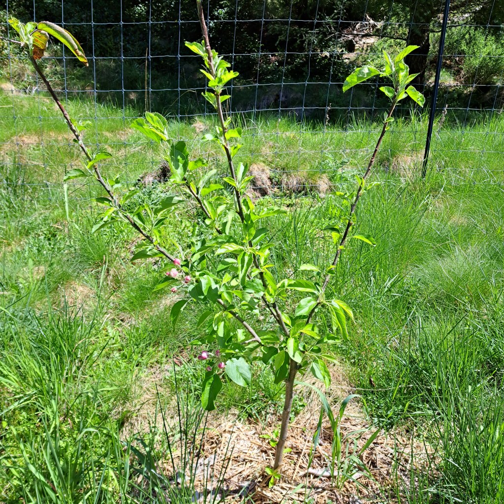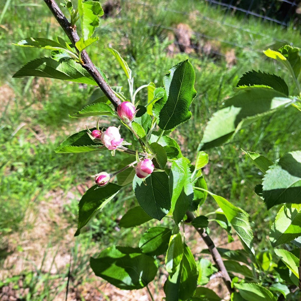 We wrote about one of our apple trees that bloomed last November (link here). We were wondering if it would bloom in spring, too … Looks like it is going to!