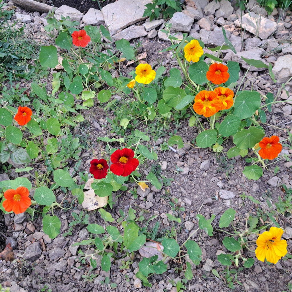 Nasturtiums are in bloom now. We might be able to throw one or two flowers in salad mix for Wednesday.