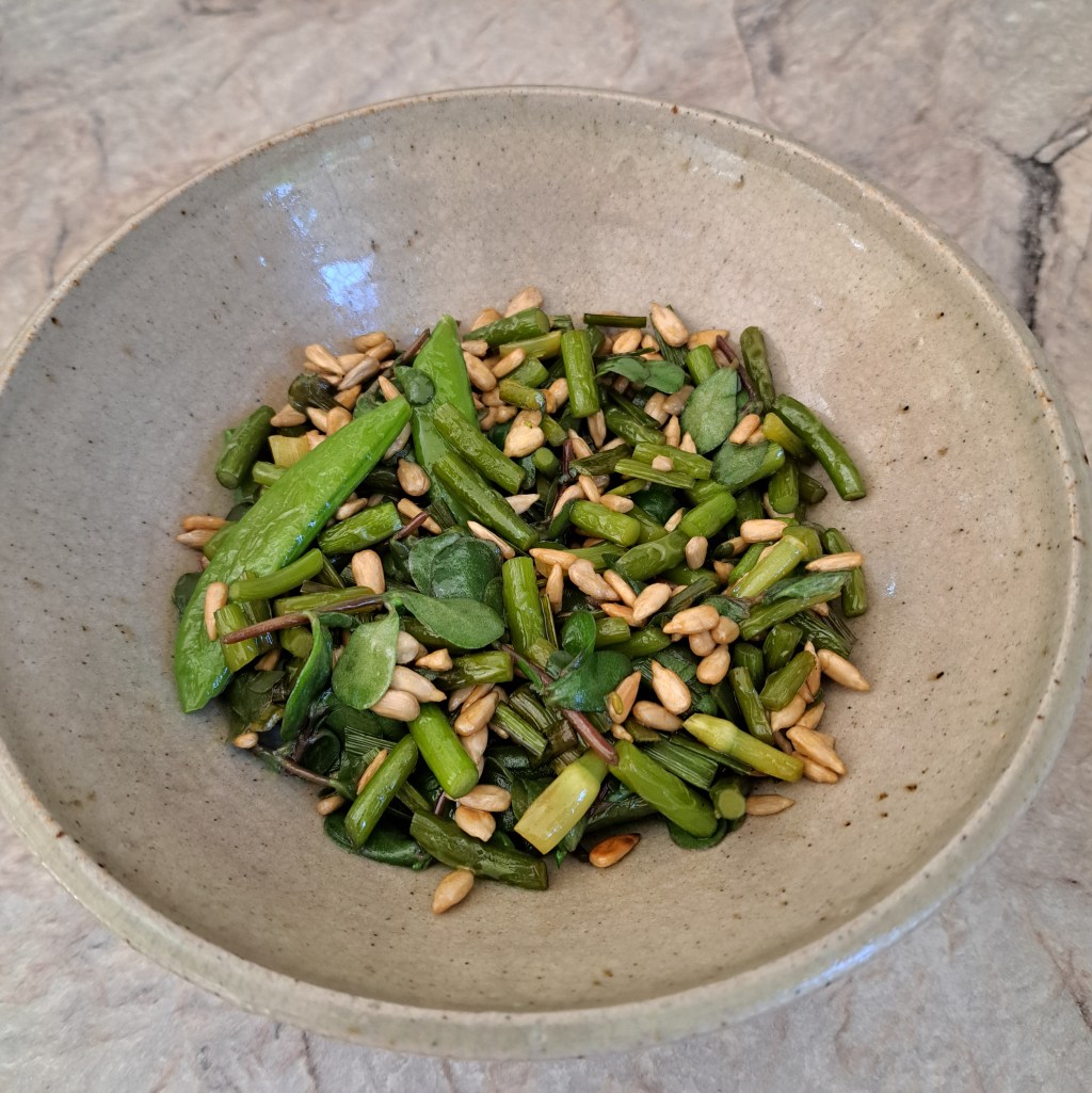 Sunday is our day off (well, kind of) and we often harvest for ourselves. Last Sunday we harvested purslane and cooked for dinner. Purslane is considered “weed” but it is rich in omega-3 and vitamins and minerals, and tastes very nice. It can be eaten raw or cooked. We sauteed lightly in butter, with garlic scapes and snap peas, sprinkled with sunflower seeds and seasoned with soy sauce. Is anyone interested in pick-your-own purslane?