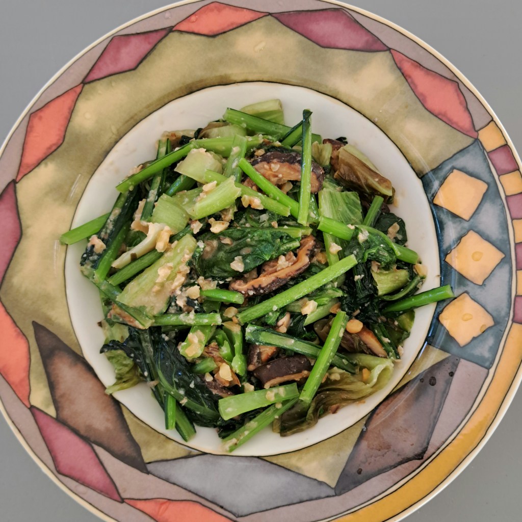 In fact, radicchio is a cultivated chicory for the leaves, and eaten mainly in Italy and Greece. They can be eaten raw or cooked. To eat raw in salad, vinaigrette with lemon juice and honey would go well with it to compensate the bitterness. When they are cooked, bitterness subside (to some degree) and distinct flavour remain. Last week, we made a stir-fry with shiitake mushrooms, komatsuna and chopped walnuts and seasoned with miso and maple syrup.