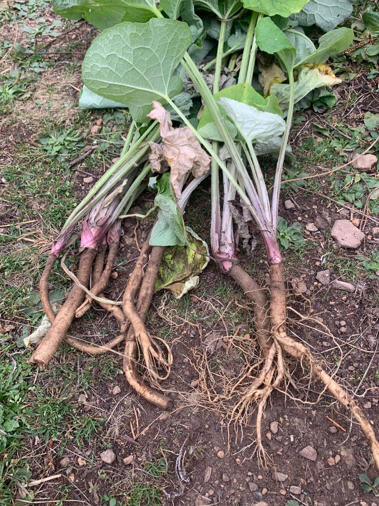 This year we have planted some vegetables as experiment and gobo(burdock) is one of them. While they were small, the leaves were eaten by someone but they survived and were growing well. Roots are what we eat and we are supposed to harvest in the fall before frost. Last week, we noticed that someone was eating the roots, one by one. There is no damage to the plant above ground and seems like someone was eating from underneath. Is it mouse, or mole, we don’t know, but we decided to harvest now. They have a deep earthy flavor and really nice in soup or stir fry. We will grow more next season and hopefully, we can bring to the market.