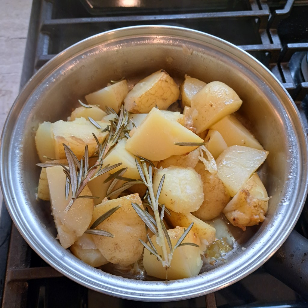 One of the easiest and quickest way to cook potatoes are pan-roast with olive oil and herbs. Click here for the recipe of Pan-roasted potatoes with garlic and rosemary.