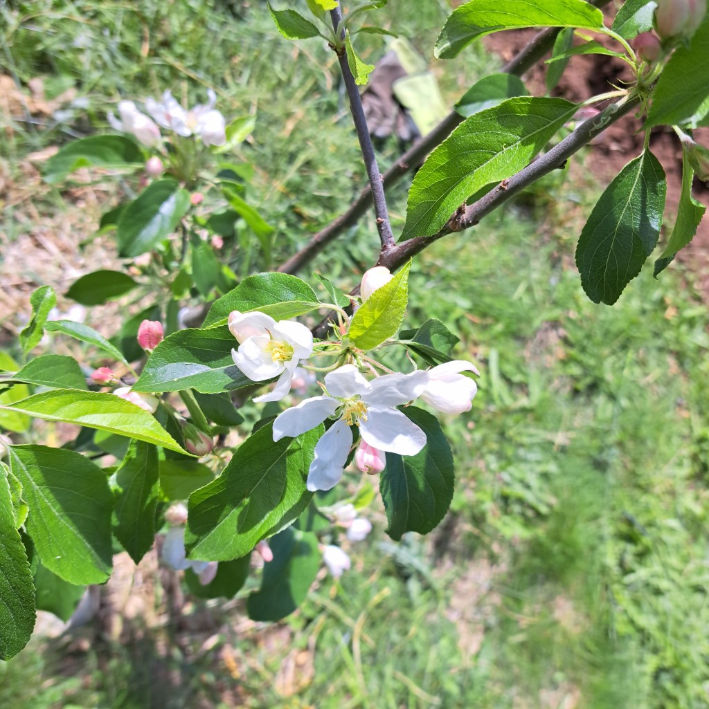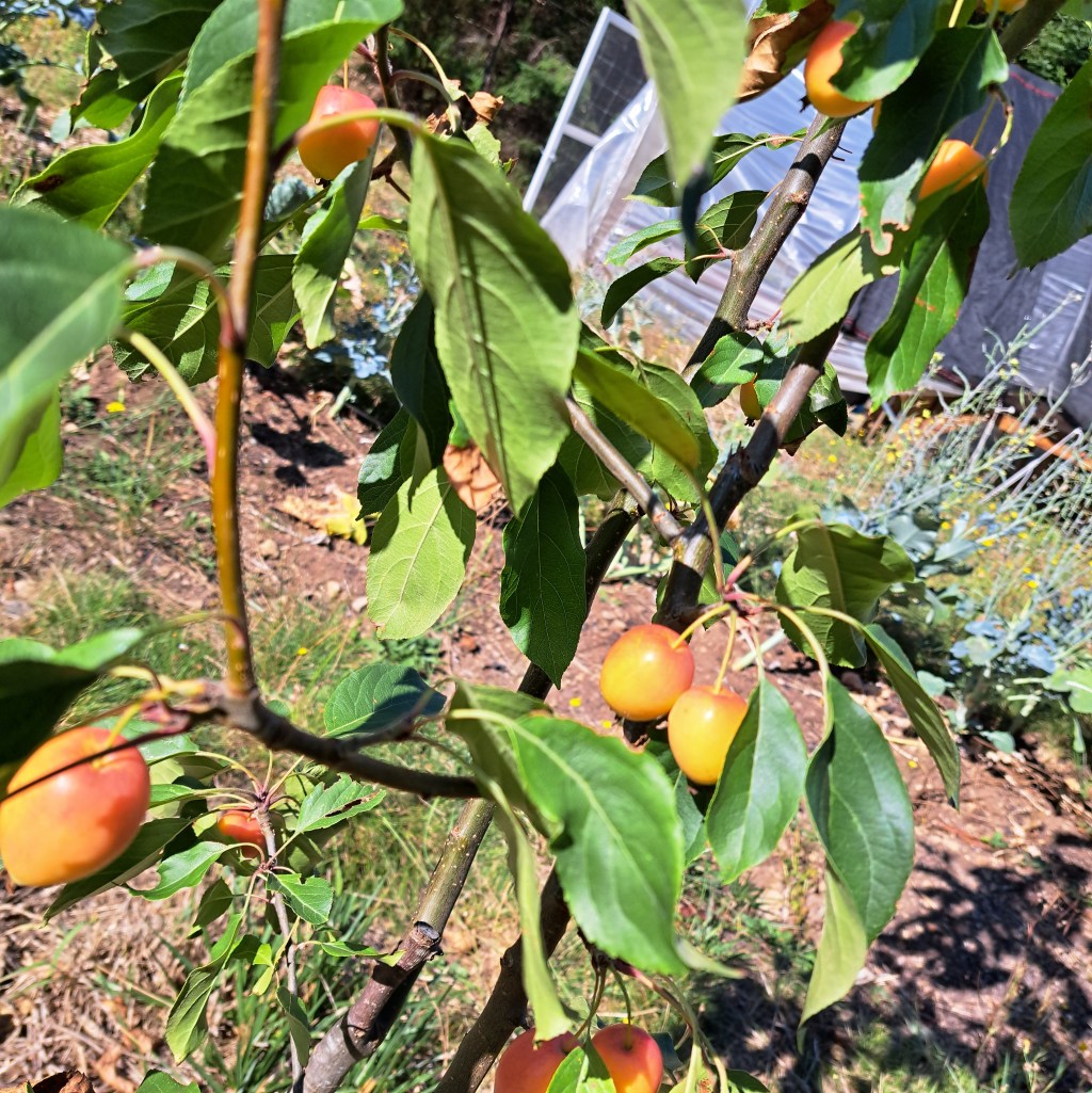 We planted four apple trees three year ago. This spring, two of them had flowers, then one of them started to have fruits, lots of them. We were so excited and waited and waited for them to become bigger. They didn’t get much bigger and started to change color. We checked the variety, and found that it was a crabapple… When we were in Toronto, crabapples were everywhere as roadside trees. I tried once and they tasted really really sour and tart, so I always thought crabapples were good only for jams and not for eating. I hesitated, but picked one fruit from our tree and ate it, and it was amazingly sweet and delicious. The variety is “John Downey”. If you ever want an apple tree and don’t want to wait too long to get fruits, this might be a good option.
