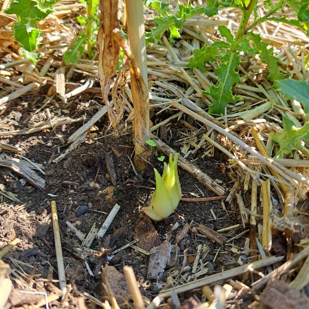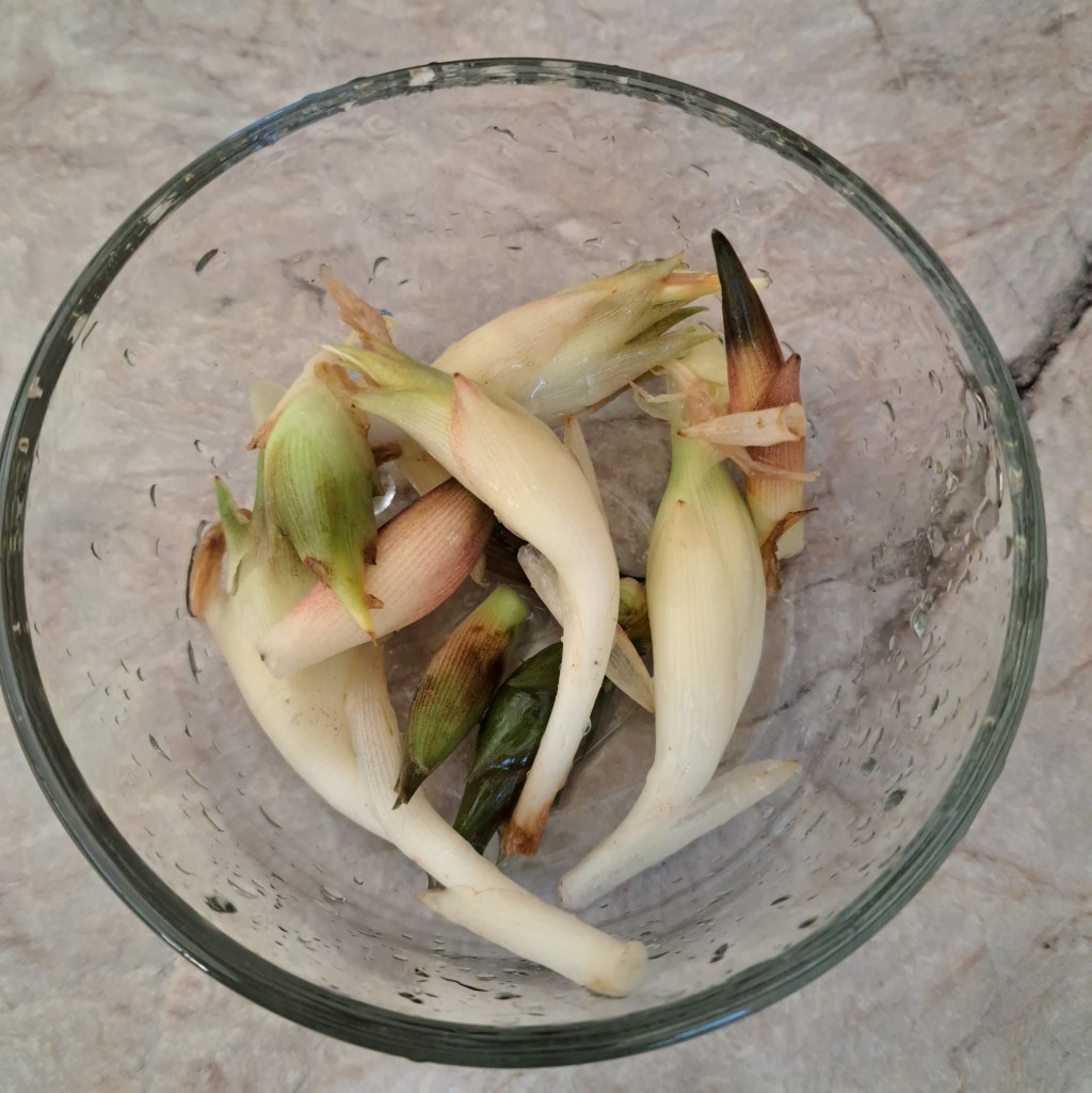 This is “myoga”, or “Japanese ginger”. Around this time of year, flower buds come out from the ground and that is what we eat. They have slightly sour, refreshing flavor and considered a delicacy for summer. Usually, sliced/minced and eaten raw as a condiment or added to soup. We planted a few stems we brought from Toronto, and waiting for them to spread so that we can introduce this unique food item to our clients. They spread by underground stems, very slowly among rocks…