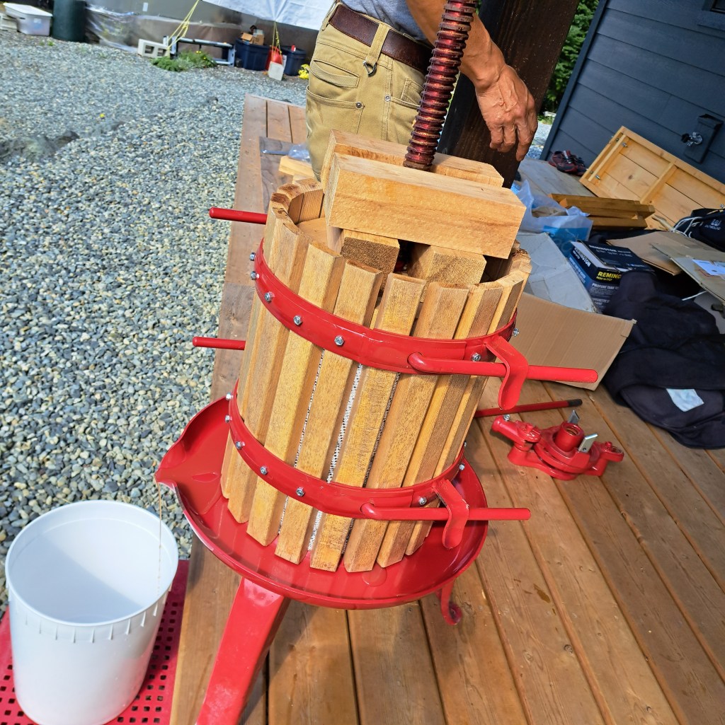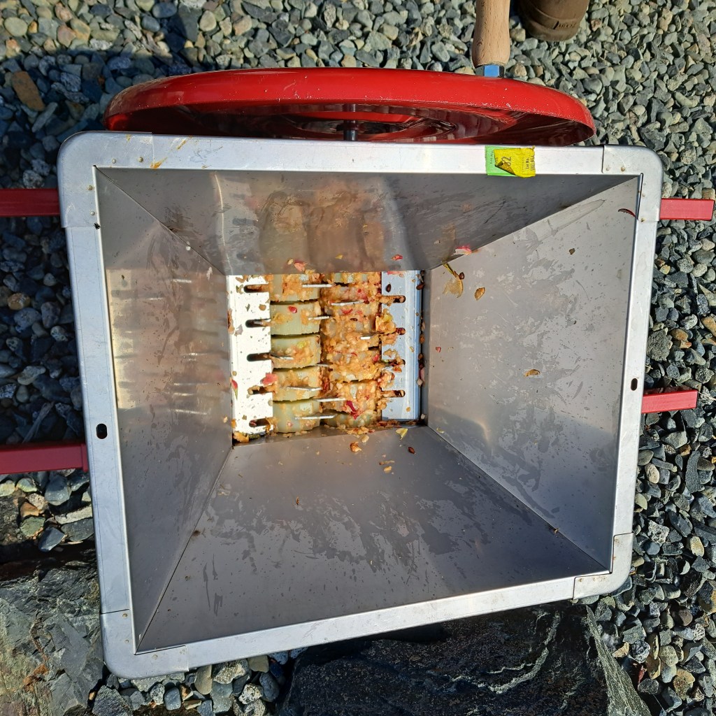 We have never used this kind of press, and were very curious. We bought tote-full of apples from a local orchard, and pressed on Sunday, Sep.7th.