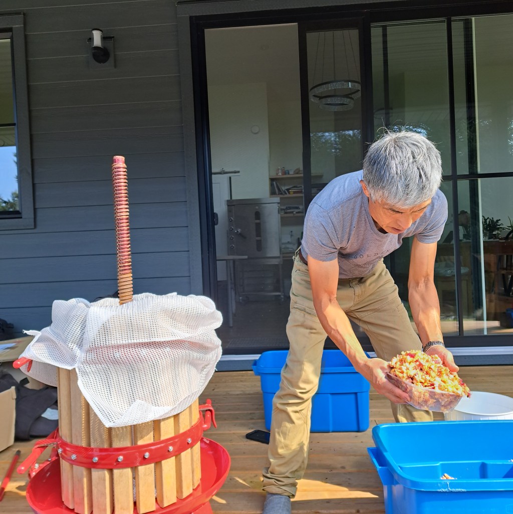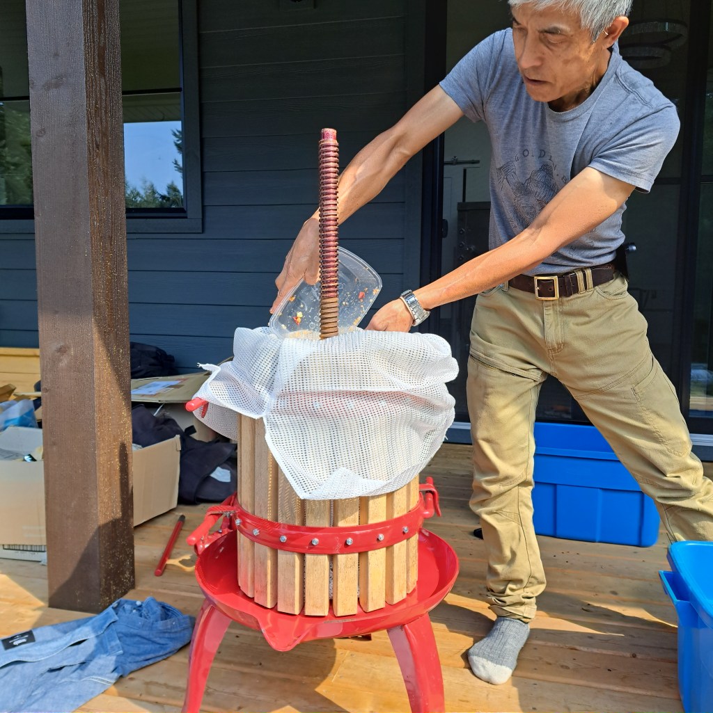 One of our friends told us that she has a fruit press but no space to store it. So we volunteered to keep it for her, under the condition of we can use it.