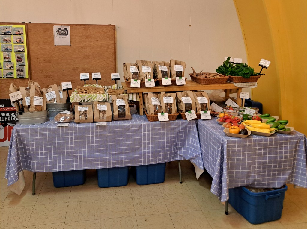 Saturday market is on at 10am – 1pm. We are inside with lots of bread and some veggies. Please come in.
