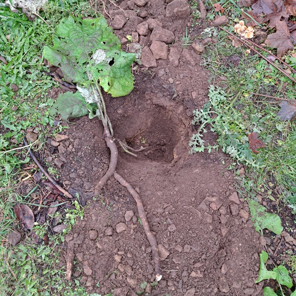 As we mentioned in our newsletter Vol.47, we harvested most of gobo (burdock) earlier than we were supposed to. However, among a few that we left, one of them grew really well.