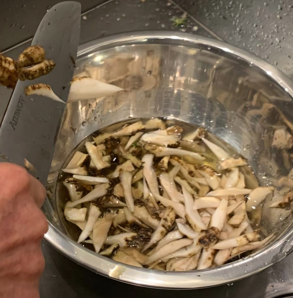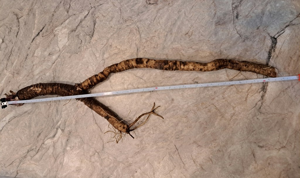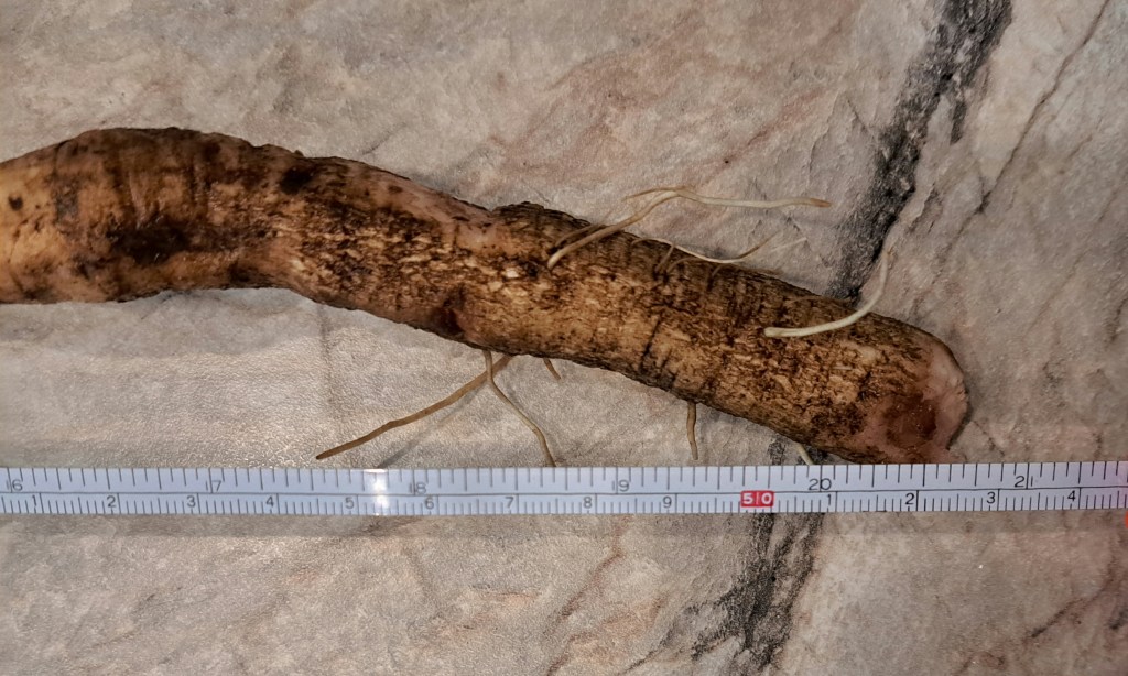 It was more than 50cm in length. We dug very gently and carefully, not to break in the middle, in our soil full of rocks. Believe it or not, it took 2 hours to dig one gobo…