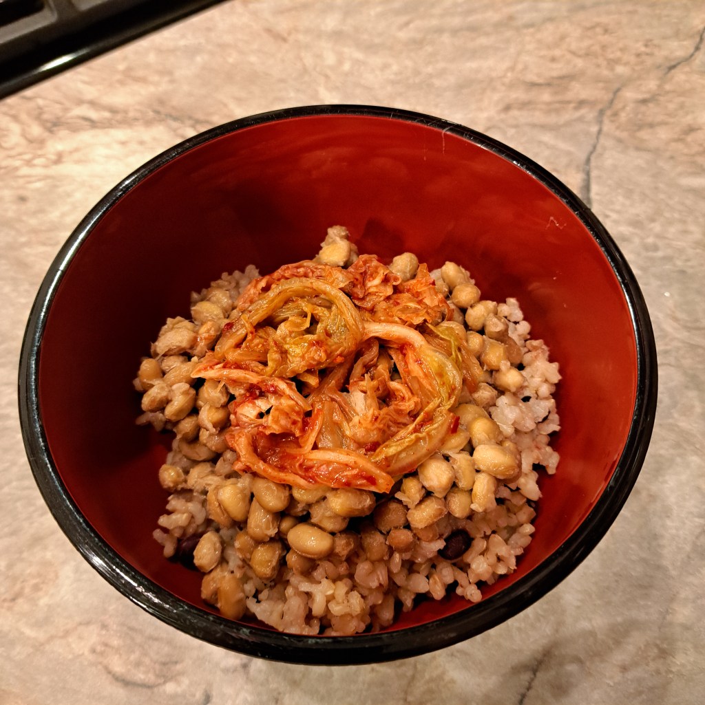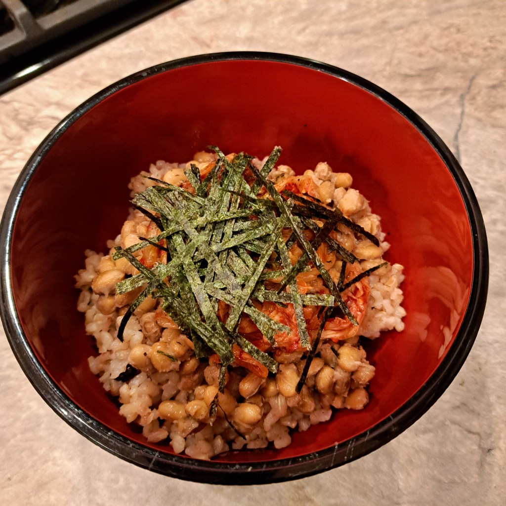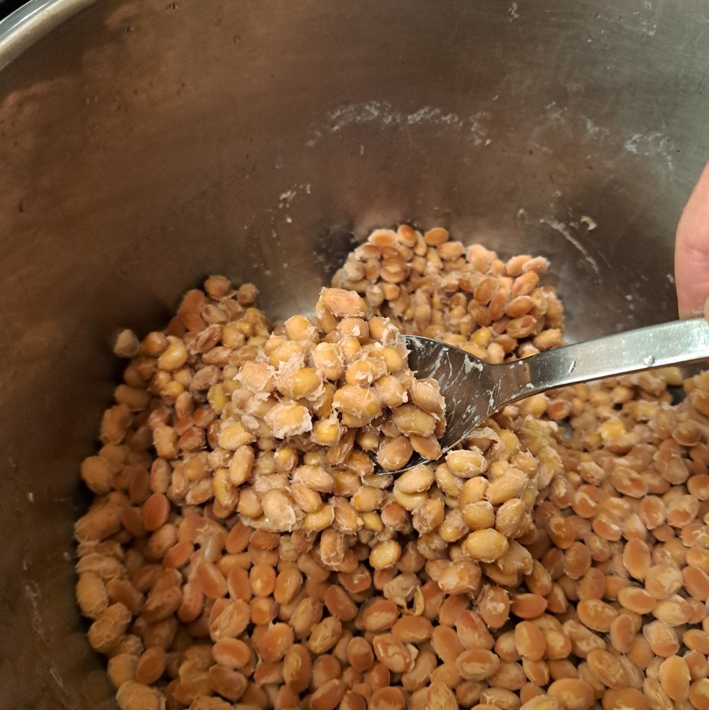 5. Once beans are cooked, discard cooking water, and pour the natto culture liquid over while beans are still hot. Mix well.