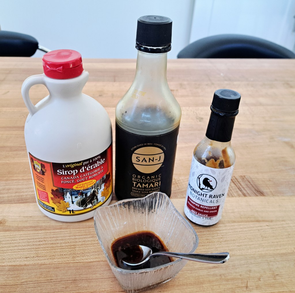 - Sauce – Tamari sauce : maple syrup : onion garlic hot sauce = 4:2:1