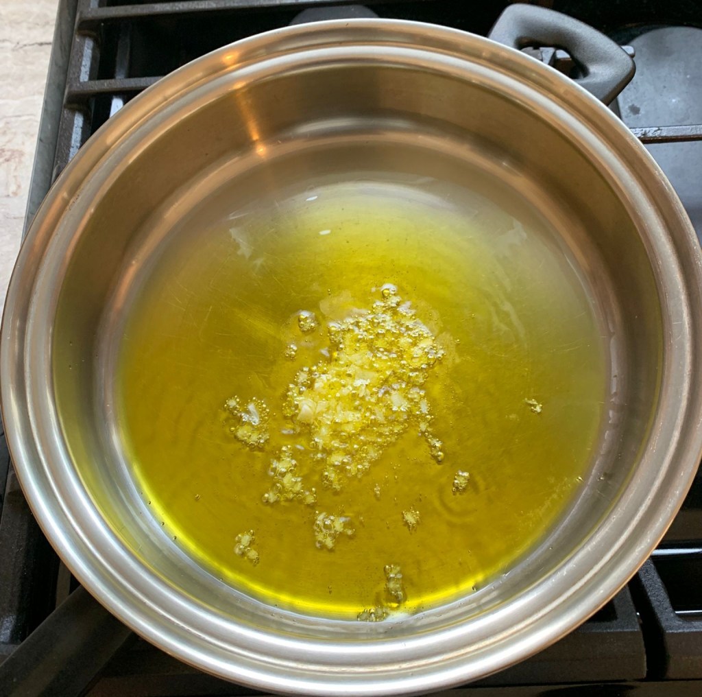 - 1 bunch Mizuna, separate green from white stem, both to be used