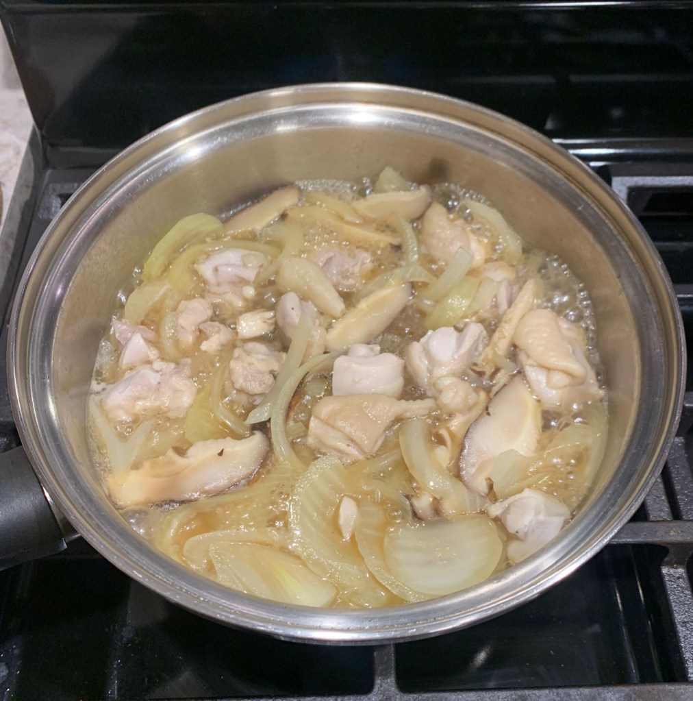 - Chicken thigh 80g, cut to 1/2″ cube